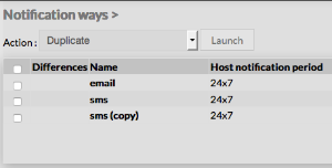 | To duplicate a notification way, first go on the Main page listing all notification ways. Then select one by clicking on the check box placed on the first column. | |