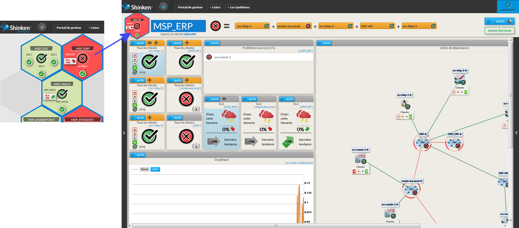 • si jamais l'ERP tombe, accès direct aux problèmes causes à investiguer en priorité.