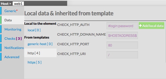 In this example, we can see 3 checks, inherited from http template, and https template.
