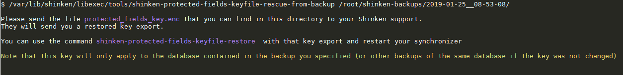 • Cette commande permet d'extraire d'une sauvegarde Shinken Entreprise, la sauvegarde de la clé utilisée au moment de la sauvegarde.