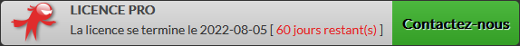 Les messages contiennent un bouton "Contactez-nous" qui permet d'envoyer un mail à propos de votre licence (création, renouvellement, question, etc...) .