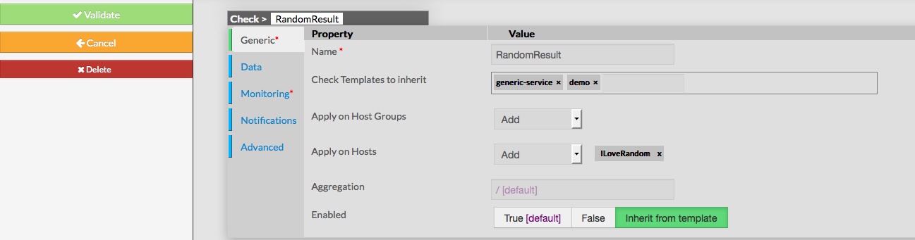 The form displayed is the same as the form used to create a new Check. All fields are filled with Check properties. Once changes have been made, configuration of the Check must be saved Cancel button revert all changes to precedent configuration. | |