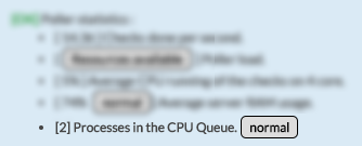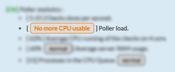 Une pastille orange précédant la mention "Poller load" signifie que le Poller ne peut plus prendre de checks supplémentaires. Cette pastille indique que le Poller fonctionne à la vitesse maximale qui lui est permise par le processeur.