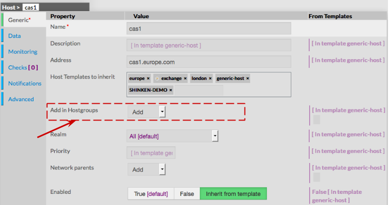 All fields are filled using the host group properties.