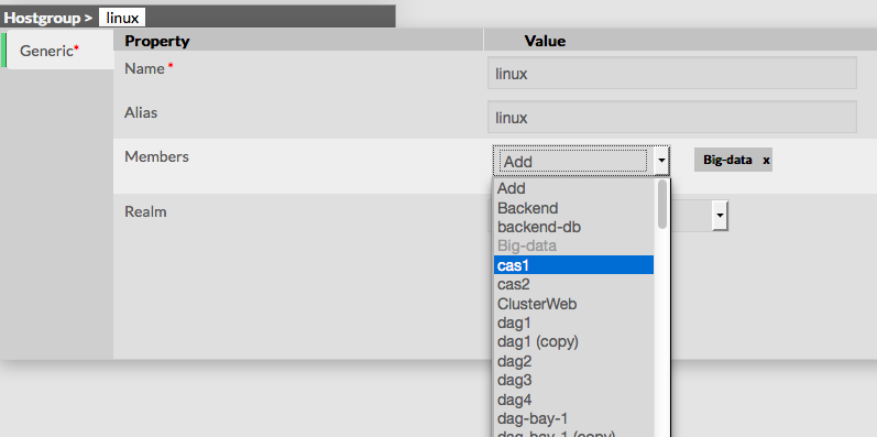 Then in the Host group Form, select hosts you want to add by opening the selected list