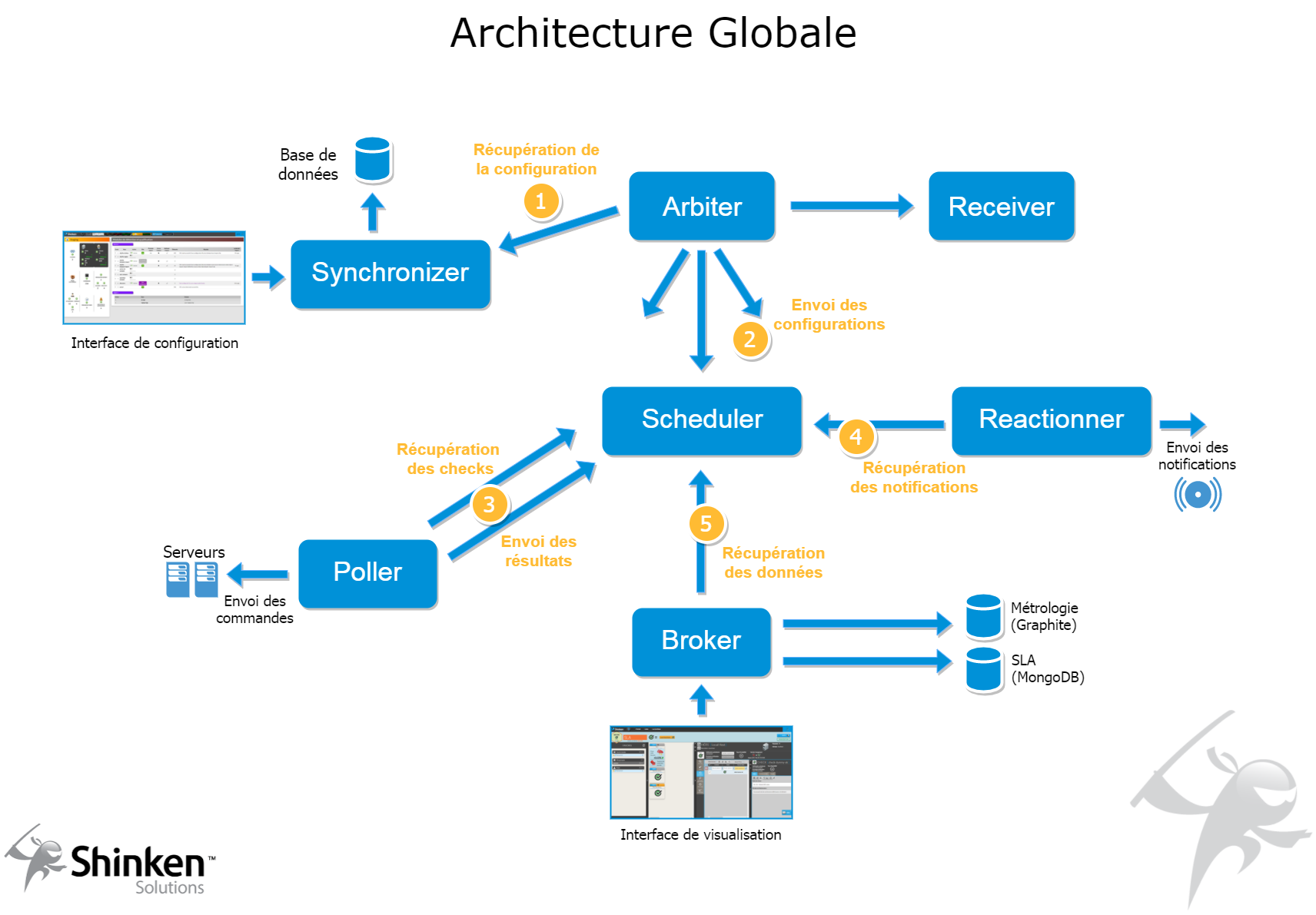 Shinken Enterprise, via le démon Arbiter, est capable de découper la configuration en plusieurs parties et les distribuer aux Schedulers .