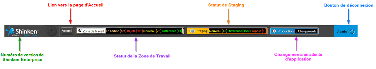 La barre de menu pour l'administrateur de SI