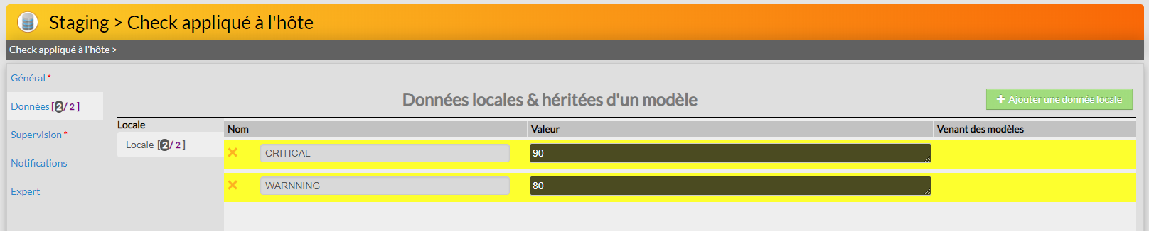 - Données accrochées à l'hôte ( ou cluster ) présentes dans l'onglet Données