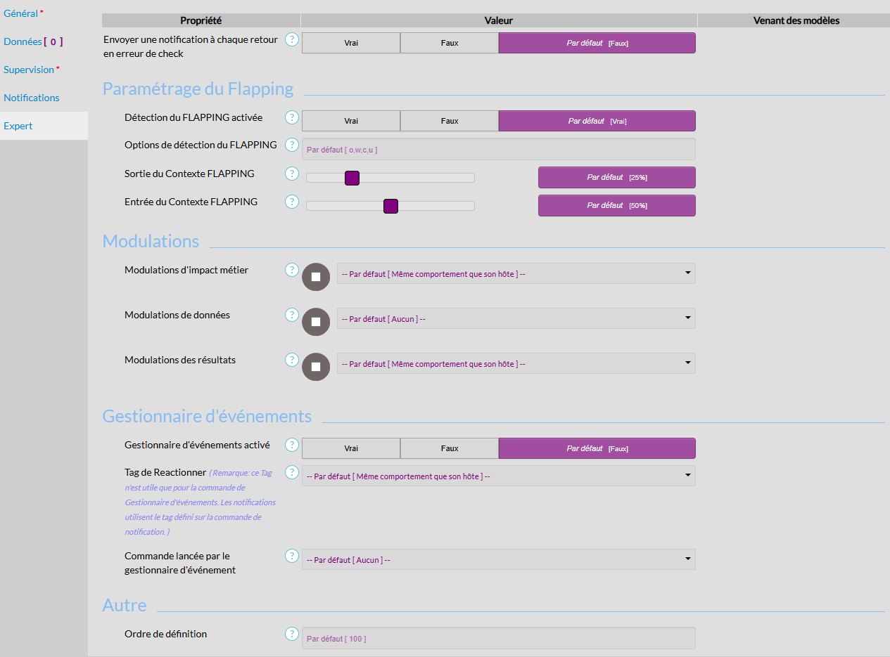 Cette propriété permet de définir si la détection du Contexte FLAPPING est actif.