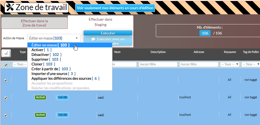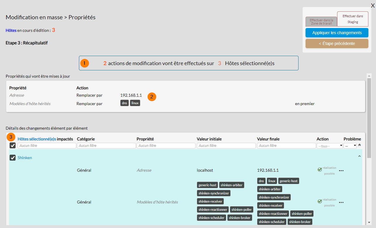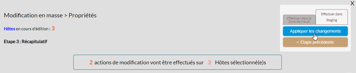 Pour les hôtes, vous pouvez décider d'appliquer les modifications en zone de travail ou directement en "Staging".