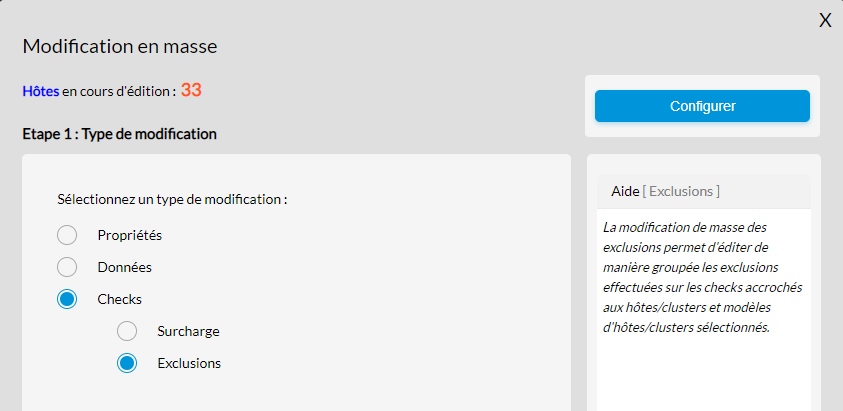 Il est possible d'exclure ou supprimer une exclusion d'un check appartenant aux éléments sélectionnés. - Surcharges :