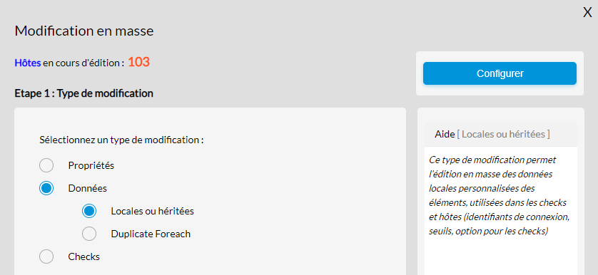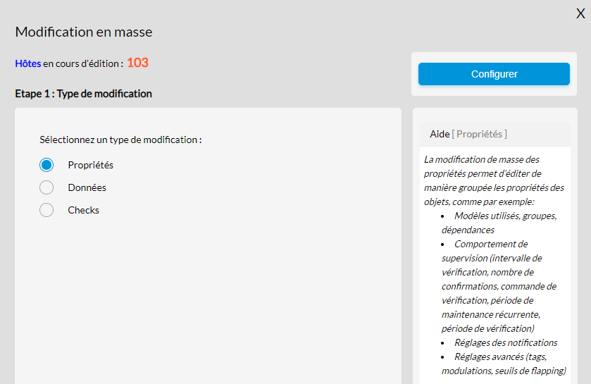 Une fois l'option de modification sélectionnée, vous pouvez passer à l'étape suivante en cliquant sur le bouton "Configurer" en haut à droite