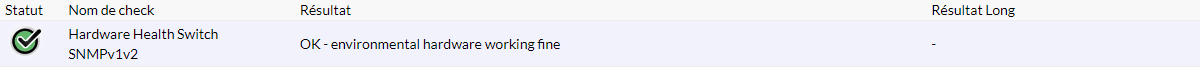 Le check Hardware Health Switch SNMPv1v2 vérifie le bon fonctionnement physique du matériel de l'appareil ( alimentation, ventilateurs, températures, disques… ) en utilisant les versions v1 ou v2 du protocole SNMP.