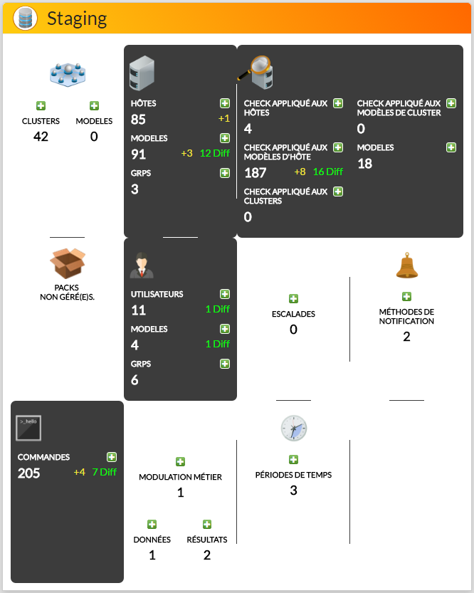 Le fonctionnement du tableau de synthèse est le même que pour l'administrateur Shinken mais seuls les hôtes en Staging visible pour l'administrateur de SI et le compte de l'utilisateur sont comptés.