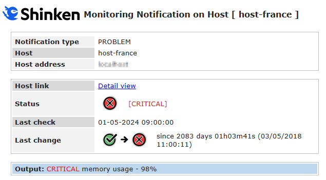 HOSTOUTPUT | non modifiable | La sortie du check à l'origine de la notification |