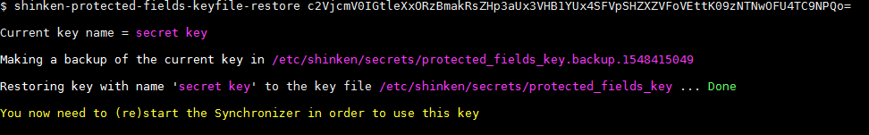 Cette commande shinken-protected-fields-keyfile-restore permet de restaurer sur votre installation Shinken-Entreprise, le hash de la clé obtenue via la commande shinken-protected-fields-keyfile-export.