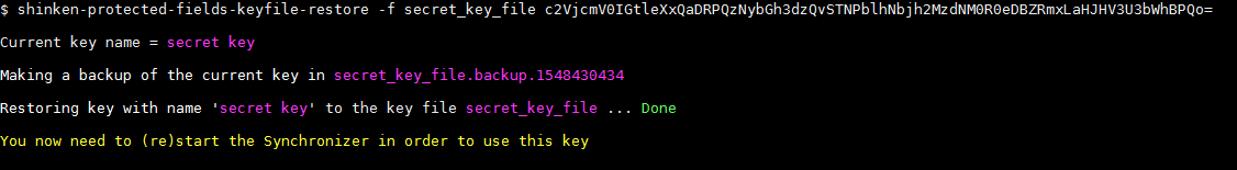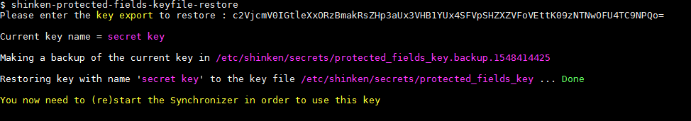 Après l’exécution de la commande, il vous sera demandé de redémarrer le Synchronizer pour que la clé soit prise en compte.