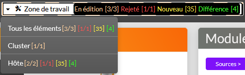 - Zone de Travail : 3 hôtes en éditions, 1 hôte rejeté du statut Staging, 35 nouveaux hôtes et 4 différences provenant des sources.