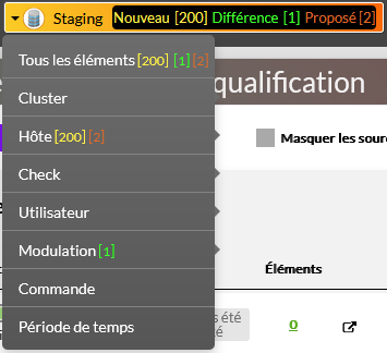 - Staging : 200 nouveaux éléments, 1 différence sur les modulations et 2 propositions de modifications sur les hôtes provenant de la Zone de travail.