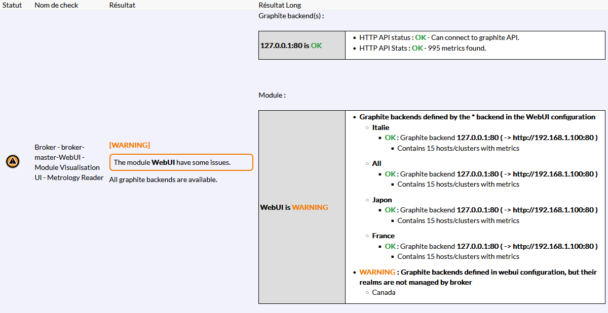 Si dans la définition d'un graphite_backends, un ou plusieurs royaumes n'ont pas d'adresse définie, mais qu'ils sont quand même gérés par le Broker, alors une erreur sera remontée dans le check.
