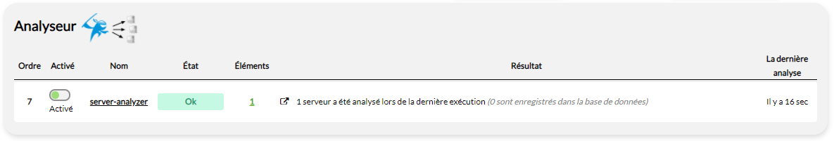 Son nom : un clic sur ce champ donne accès à la page de configuration ( voir la page Configuration d'un analyseur ) ;