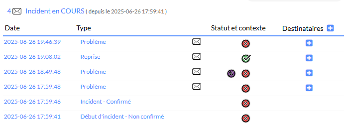 Sur un élément ( hôte ou check ), il ne peut y avoir qu'un incident en cours.
