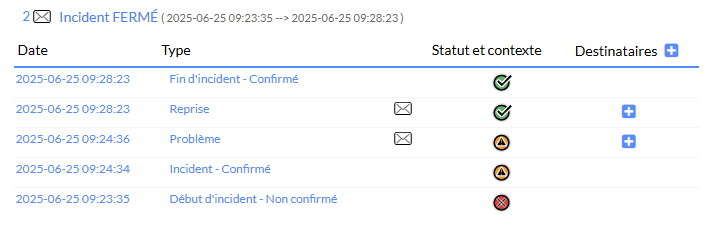 Un incident sera créé lors de la première notification sur un statut Non-OK.