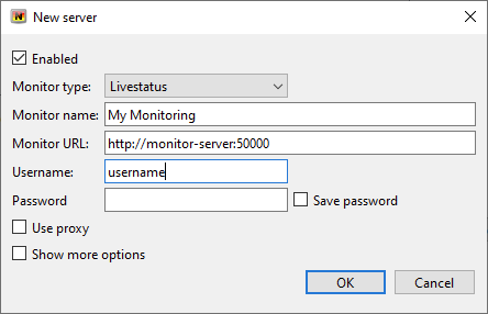 - Password : Ce champ n'est pas utilisé par Livestatus.