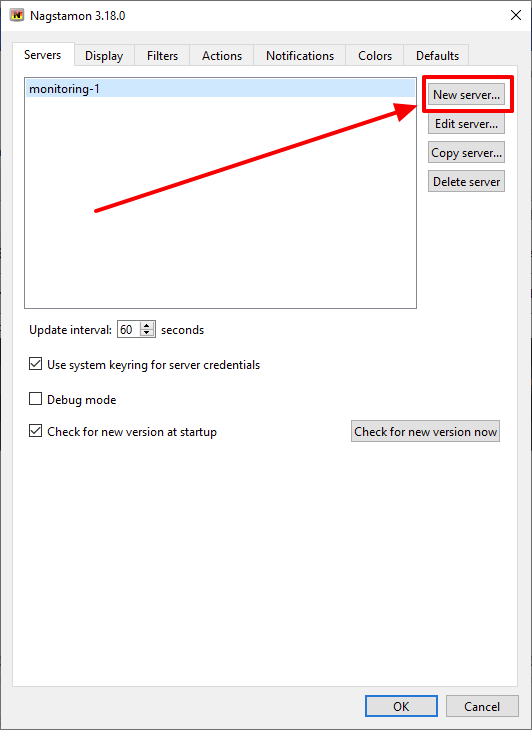 Une fois Nagstamon installé, il faut paramétrer un nouveau serveur.