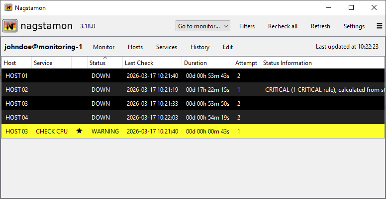 - Window : Nagstamon se présente sous la forme d'une fenêtre comme les autres applications.