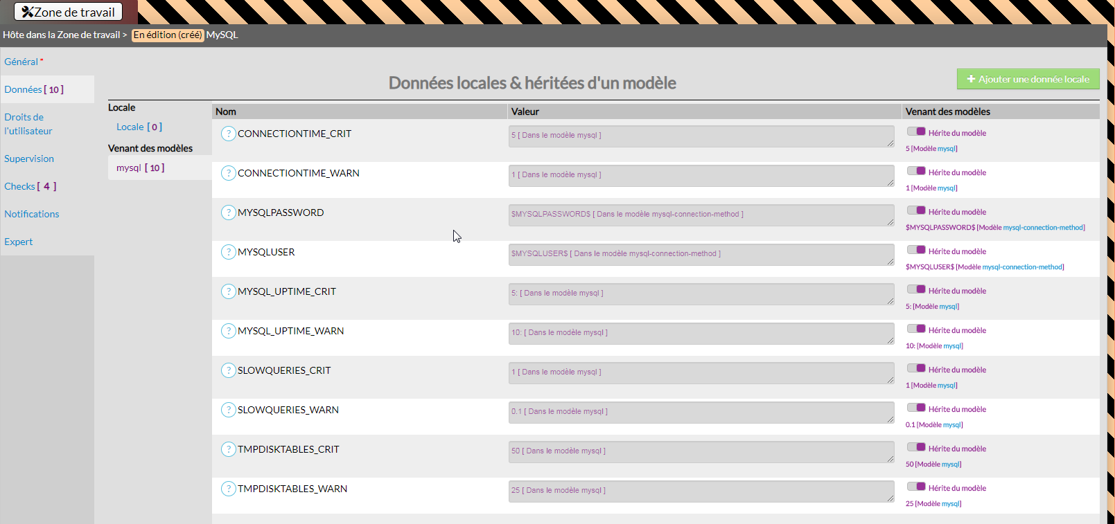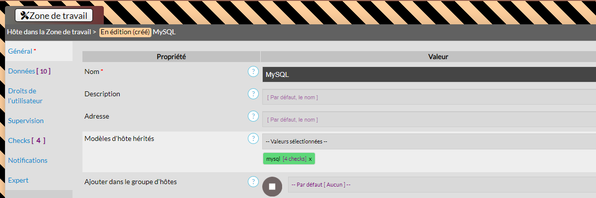 Sur l'hôte à configurer, ajouter le modèle MySQL voulu dans la liste des modèles à utiliser.