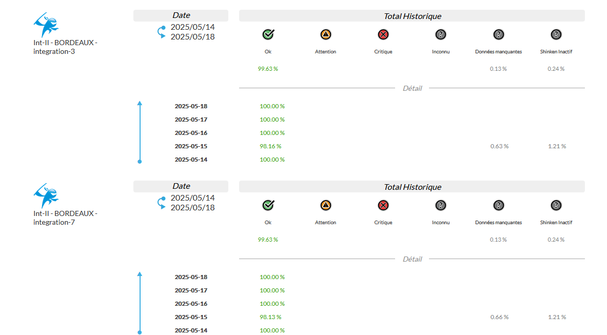 • il permet de confronter l'historique des statuts avec le taux de disponibilité et voir quels statuts ont influencé le taux de disponibilité,