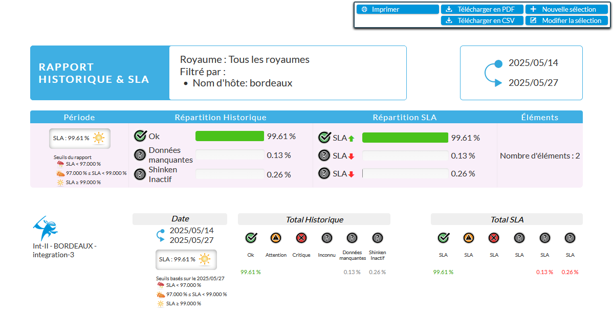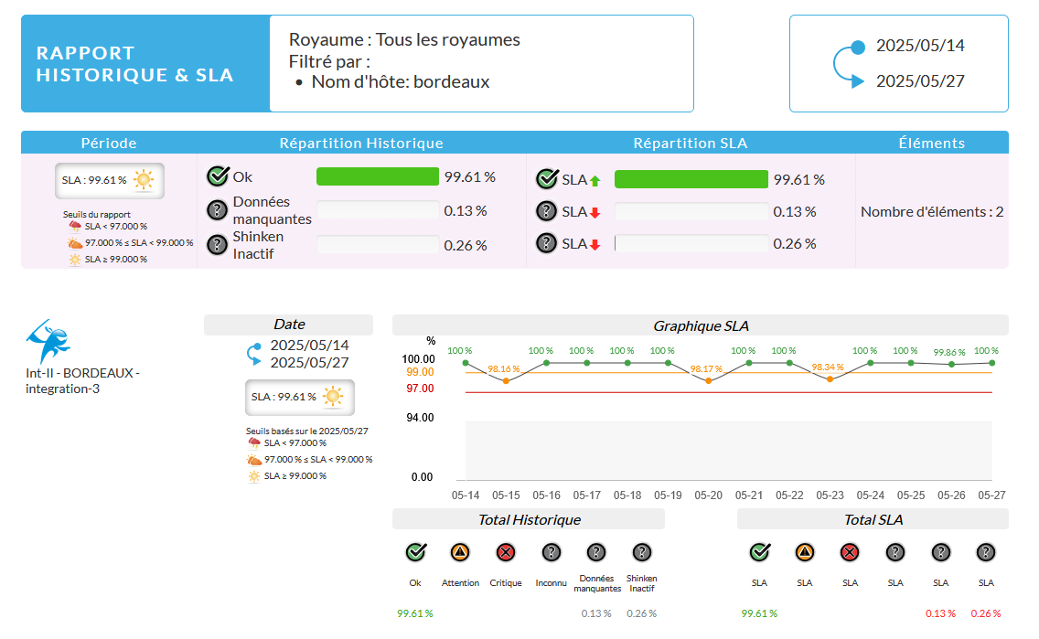 Comme dans le rapport Historique, on retrouve un encart qui contient le résumé du SLA.