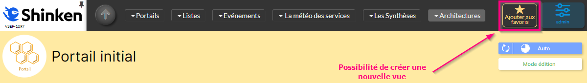 Dans l'exemple ci-dessous, on peut voir que l'utilisateur va pouvoir créer un favori en cliquant sur le bouton "Ajouter aux favoris" et ainsi pour la partager avec une autre section.