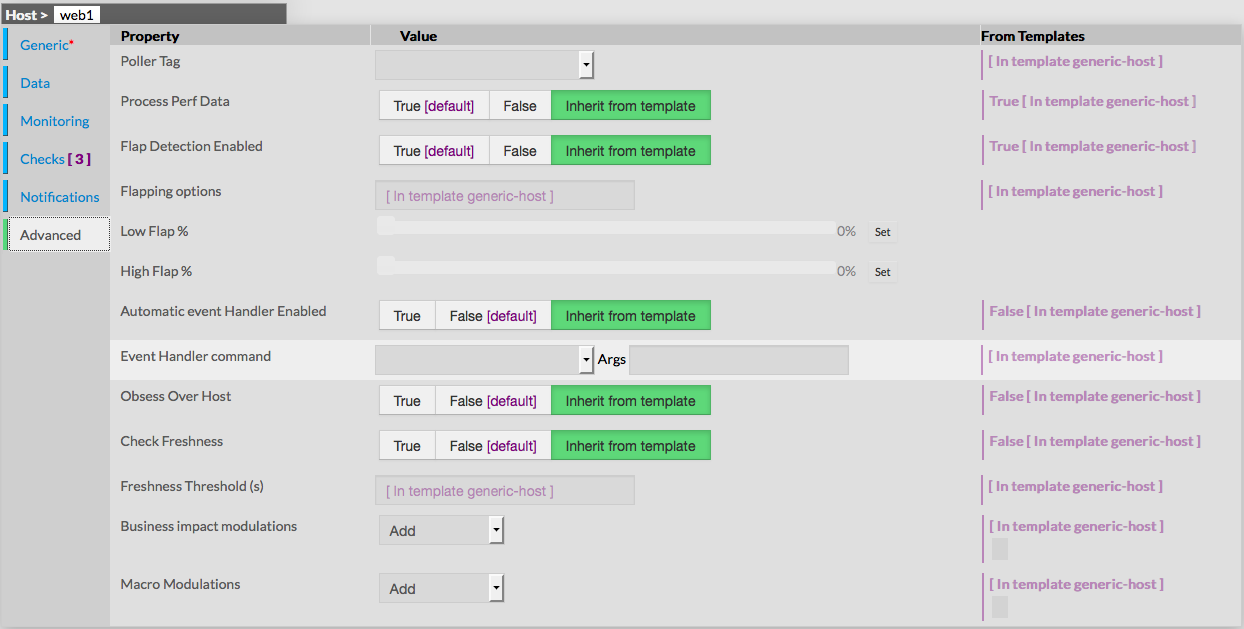 This form is used to configure properties that define monitoring for the host itself.