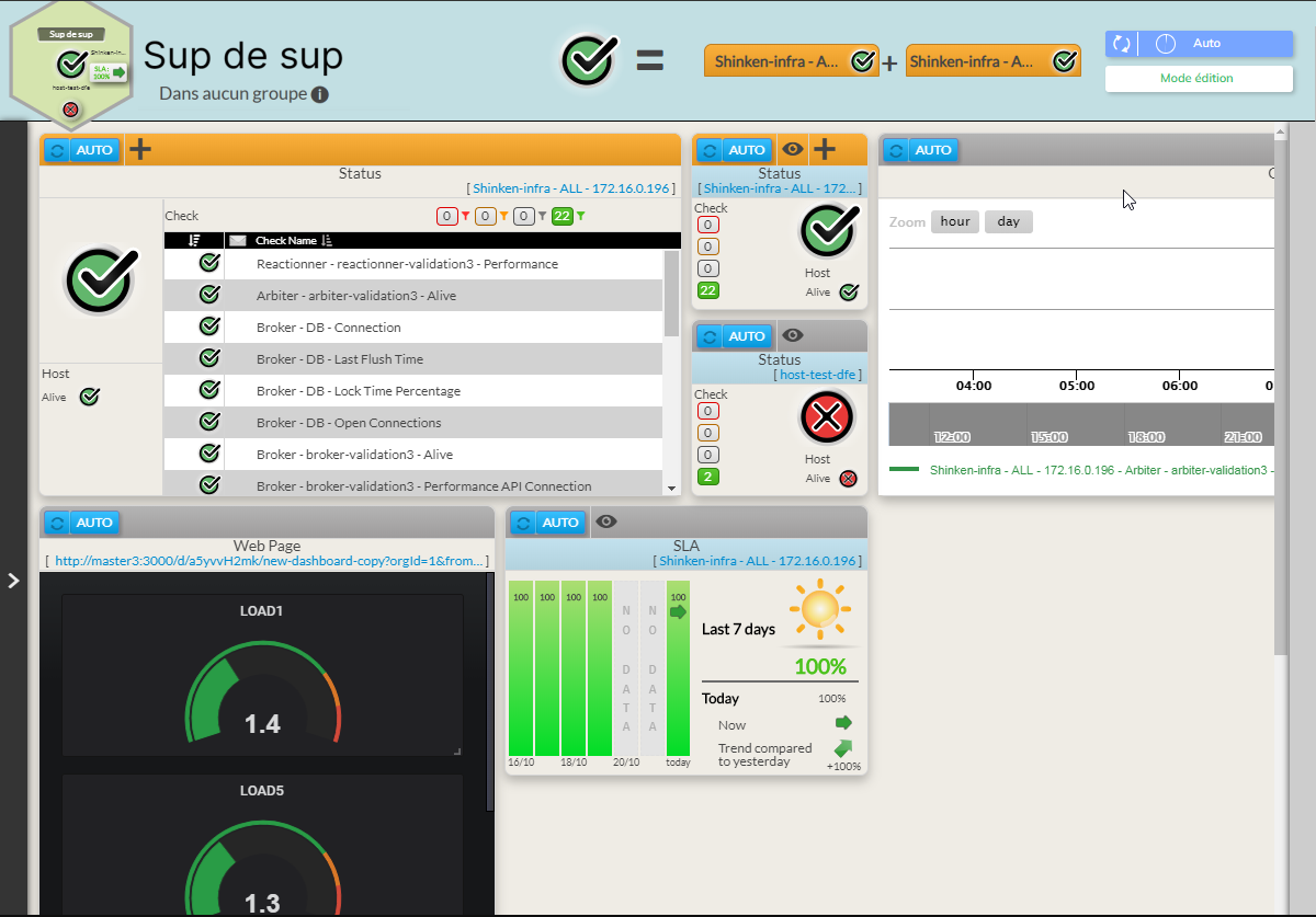 - Le bouton rafraîchissement est remplacé par le bouton action ( configuration, suppression et définition comme favori pour le statut global du tableau de bord : seulement pour les widgets statuts et SLA ).