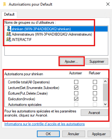 Permissions WinRM pour l'utilisateur