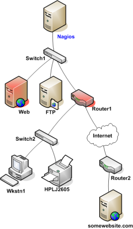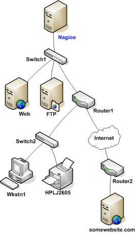Regardons le diagramme réseau ci-joint et imaginons qu'on supervise tous les hôtes