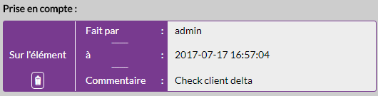 Si des prises en compte sont effectuées sur le check, elles sont affichées de la manière suivante.