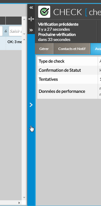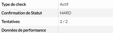 Cet onglet affiche les détails d'un check attaché à un hôte ou à un cluster. Il vous permettra d’accéder à des informations qui ne sont pas présentes depuis les listes.