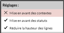 1. Mettre en avant les contextes (les lignes prendront la couleur des contextes)