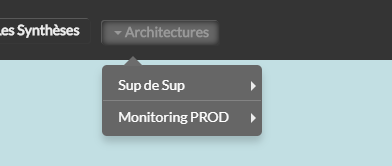 La modification de la configuration des modules d'export de l'architecture et le redémarrage de l'Arbiter a généré les différentes visualisations de l'architecture sur les 2 machines. Si on se rend, par exemple, sur l'interface de Visualisation de la Sup de Sup, on verra des nouvelles entrées dans le menu "Architectures":