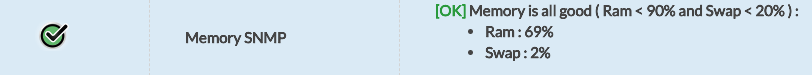 Le check Memory SNMP va récupérer les informations concernant la mémoire vive et la mémoire swap de votre machine, en pourcentage.