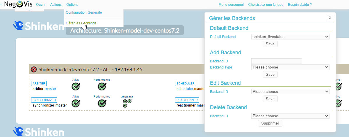 backendTexteshinken_livestatusBackend utilisé pour la connexion à Shinken