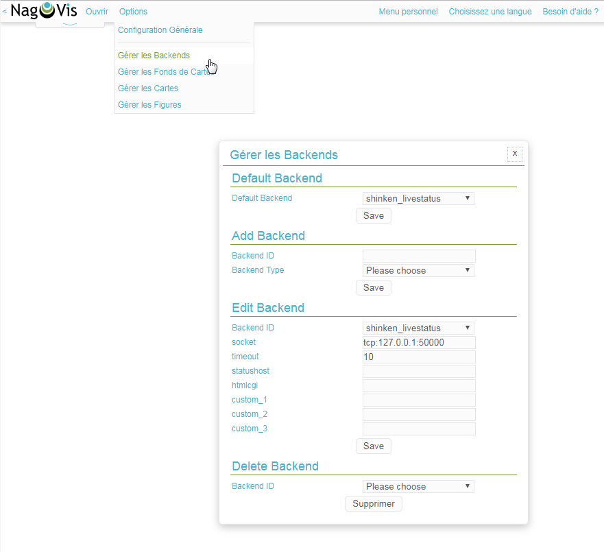Il est également possible de modifier le backend utilisé depuis le fichier de configuration de NagVis si besoin: