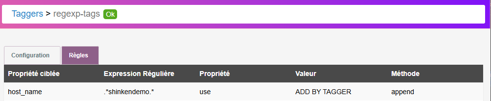 Sur l'Interface de Configuration, les noms des Taggers listés, sont des liens cliquables qui redirigent sur leurs configurations.