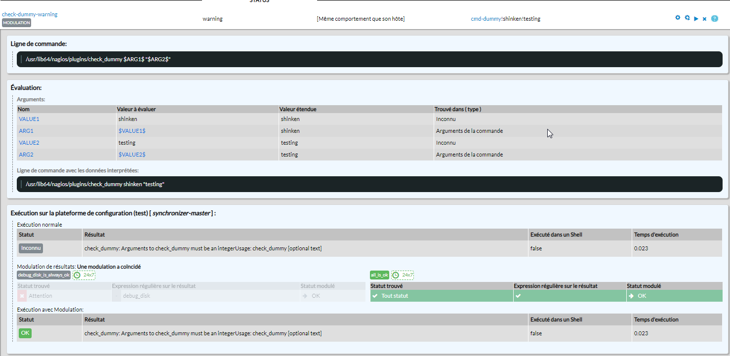 Les modulations de résultats redéfinissent le statut de sortie d'un check, en fonction de son statut initial, d'une période de temps, ou de sa sortie.