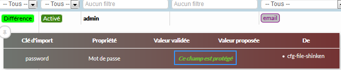 Elles seront alors masquées sur l'interface et ne transiteront pas entre le serveur ayant le démon Synchronizer et l'interface de configuration ( afin d'éviter toute interception ).