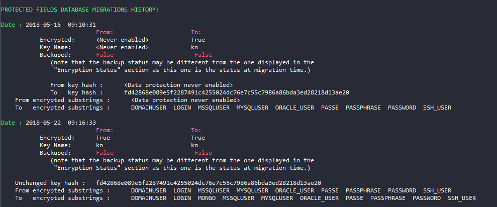 Il est fortement recommandé de changer la clé de chiffrement utilisée ( shinken-protected-fields-keyfile-migrate ) après cette manipulation.