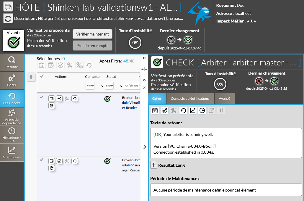 - Elles sont forcément affichées en dessous des périodes de maintenance affectées au check.